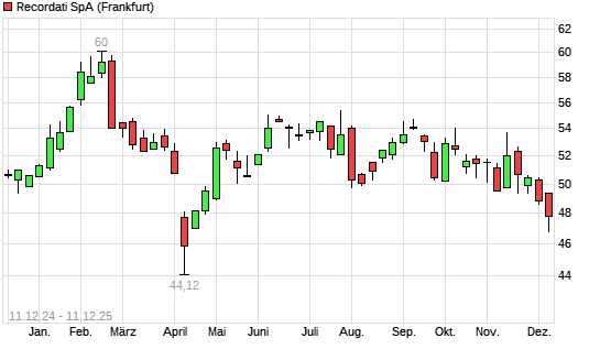 Mit dem Rücksetzer auf 47,34 EUR hat die Recordati-Aktie (ISIN IT0003828271) am 10.12.2025 ein neues 6-Monats-Tief erreicht und damit den Kurs vom 09.12.2025 eingestellt.Die Recordati-Aktie ...weiterlesen
