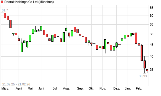 Mit dem Rücksetzer auf 33,78 EUR hat die Recruit Holdings-Aktie (ISIN JP3970300004) am 20.02.2026 ein neues 12-Monats-Tief erreicht und damit den Kurs vom 19.02.2026 ...weiterlesen