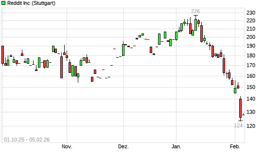 Mit dem Rücksetzer auf 126,00 EUR hat die Reddit-Aktie (ISIN US75734B1008) am 04.02.2026 ein neues All-Time-Low erreicht und damit den Kurs vom 02.02.2026 eingestellt.Der Abstand zur ...weiterlesen