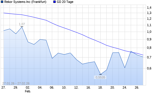 Mit dem Rücksetzer auf 0,73 EUR hat die Rekor Systems-Aktie am 26.02.2026 die 20-Tage-Linie nach unten gekreuzt.Die Rekor Systems-Aktie befindet sich seit dem 21.01.2026 ...weiterlesen