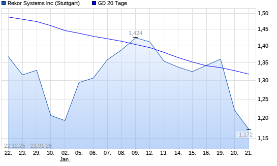 Mit dem Rücksetzer auf 1,28 EUR hat die Rekor Systems-Aktie am 20.01.2026 die 20-Tage-Linie nach unten gekreuzt.Die Rekor Systems-Aktie befindet sich seit dem 02.01.2026 ...weiterlesen