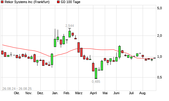Mit dem Anstieg auf 0,96 EUR hat die Rekor Systems-Aktie am 25.08.2025 die 100-Tage-Linie nach oben gekreuzt.Die Rekor Systems-Aktie befindet sich seit dem 25.07.2025 im langfristigen Abwärtstrend ...weiterlesen