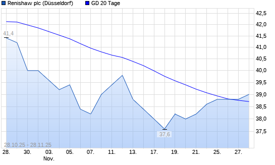 Mit dem Anstieg auf 39,20 EUR hat die Renishaw-Aktie am 27.11.2025 die 20-Tage-Linie nach oben gekreuzt.Die Renishaw-Aktie befindet sich seit dem 22.08.2025 im langfristigen Aufwärtstrend und ...weiterlesen