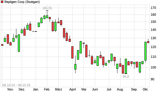 Mit dem Anstieg auf 128,85 EUR hat die Repligen Corporation-Aktie (ISIN US7599161095) am 07.10.2025 ein neues 6-Monats-Hoch erreicht und damit den Kurs vom 25.04.2025 eingestellt.Die Repligen ...weiterlesen