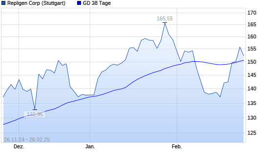 Mit dem Anstieg auf 155,80 EUR hat die Repligen Corporation-Aktie am 25.02.2025 die 38-Tage-Linie nach oben gekreuzt.Die Repligen Corporation-Aktie befindet sich seit dem 09.12.2024 im langfristigen ...weiterlesen