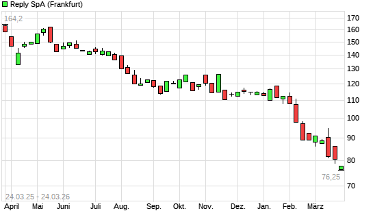 Mit dem Rücksetzer auf 77,80 EUR hat die Reply-Aktie (ISIN IT0005282865) am 23.03.2026 ein neues 5-Jahres-Tief erreicht und damit den Kurs vom 19.03.2026 eingestellt.Die ...weiterlesen
