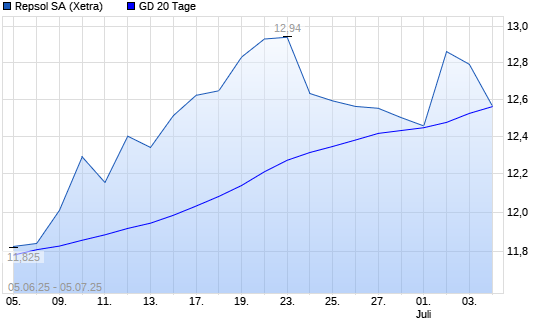Mit dem Rücksetzer auf 12,36 EUR hat die Repsol-Aktie am 04.07.2025 die 20-Tage-Linie nach unten gekreuzt.Die Repsol-Aktie befindet sich seit dem 26.05.2025 im ...weiterlesen