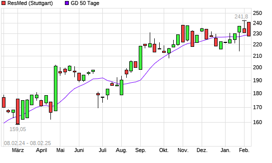 Mit dem Rücksetzer auf 227,60 EUR hat die Resmed-Aktie am 07.02.2025 die 50-Tage-Linie nach unten gekreuzt.Die Resmed-Aktie befindet sich seit dem 25.06.2024 im langfristigen Aufwärtstrend ...weiterlesen