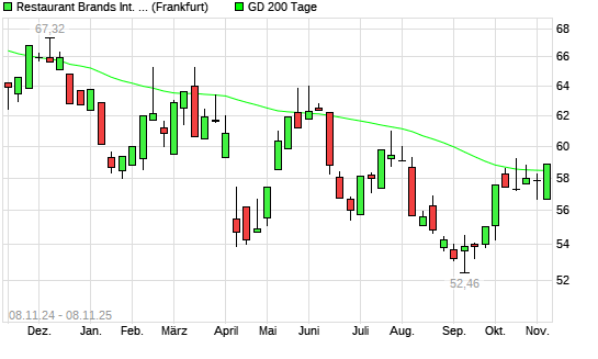 Mit dem Anstieg auf 58,90 EUR hat die Restaurant Brands International-Aktie am 07.11.2025 die 200-Tage-Linie nach oben gekreuzt.Die Restaurant Brands International-Aktie befand sich seit dem ...weiterlesen