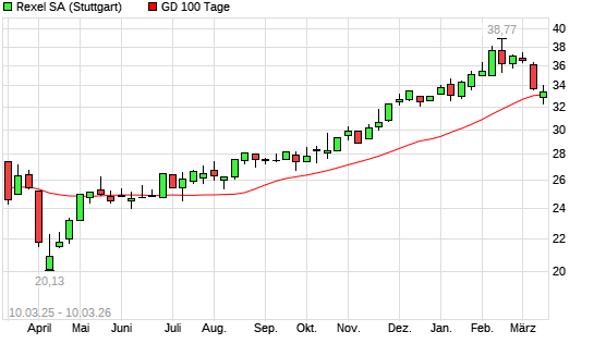 Mit dem Rücksetzer auf 32,32 EUR hat die Rexel-Aktie am 09.03.2026 die 100-Tage-Linie nach unten gekreuzt.Die Rexel-Aktie befindet sich seit dem 09.07.2025 im ...weiterlesen