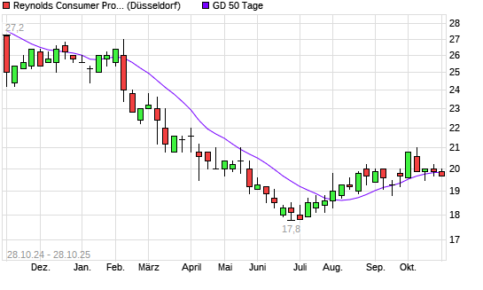 Mit dem Anstieg auf 19,80 EUR hat die Reynolds Consumer Products-Aktie am 27.10.2025 die 50-Tage-Linie nach oben gekreuzt.Die Reynolds Consumer Products-Aktie befindet sich seit dem 22.10.2025 ...weiterlesen