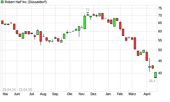 Mit dem Rücksetzer auf 39,00 EUR hat die Robert Half International-Aktie (ISIN US7703231032) am 22.04.2025 ein neues 3-Jahres-Tief erreicht und damit den Kurs vom 09.04.2025 eingestellt.Die ...weiterlesen