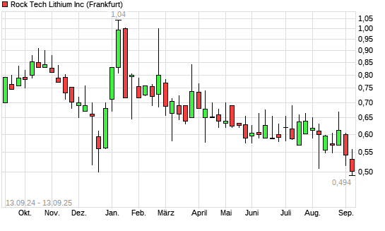 Mit dem Rücksetzer auf 0,50 EUR hat die Rock Tech Lithium-Aktie (ISIN CA77273P2017) am 12.09.2025 ein neues 3-Jahres-Tief erreicht und damit den Kurs vom 07.08.2025 eingestellt.Die Rock ...weiterlesen