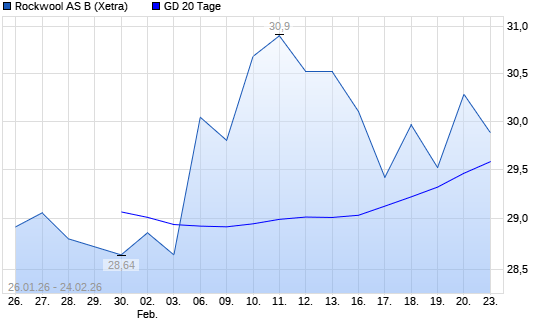 Mit dem Anstieg auf 30,10 EUR hat die Rockwool International-Aktie am 23.02.2026 die 20-Tage-Linie nach oben gekreuzt.Die Rockwool International-Aktie befindet sich seit dem 20.08.2025 ...weiterlesen