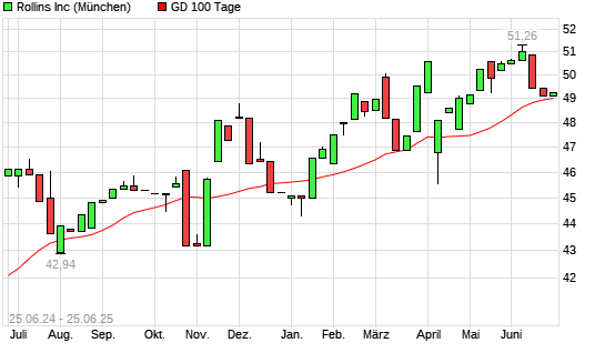 Mit dem Rücksetzer auf 48,80 EUR hat die Rollins-Aktie am 24.06.2025 die 100-Tage-Linie nach unten gekreuzt.Die Rollins-Aktie befindet sich seit dem 10.04.2025 im langfristigen Aufwärtstrend ...weiterlesen