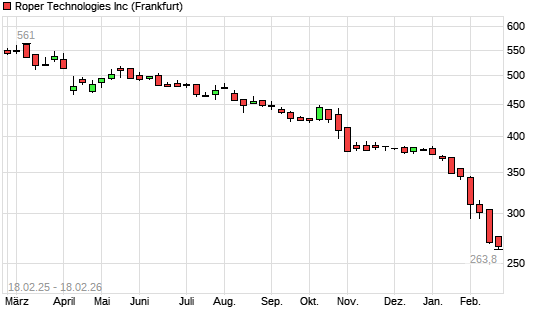 Mit dem Rücksetzer auf 263,80 EUR hat die Roper Industries-Aktie (ISIN US7766961061) am 17.02.2026 ein neues 5-Jahres-Tief erreicht und damit den Kurs vom 12.02.2026 ...weiterlesen