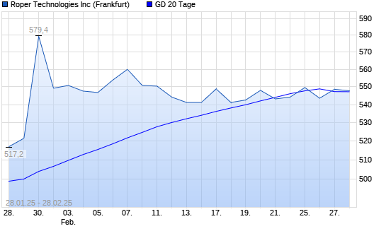 Mit dem Anstieg auf 548,60 EUR hat die Roper Industries-Aktie am 27.02.2025 die 20-Tage-Linie nach oben gekreuzt.Die Roper Industries-Aktie befindet sich seit dem 17.01.2025 im langfristigen ...weiterlesen