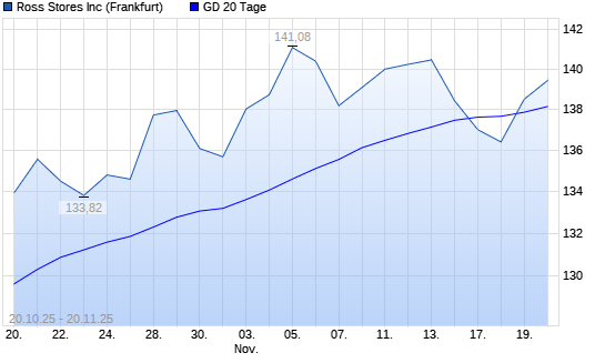 Mit dem Anstieg auf 138,50 EUR hat die Ross Stores-Aktie am 19.11.2025 die 20-Tage-Linie nach oben gekreuzt.Die Ross Stores-Aktie befindet sich seit dem 25.09.2025 im langfristigen Aufwärtstrend ...weiterlesen
