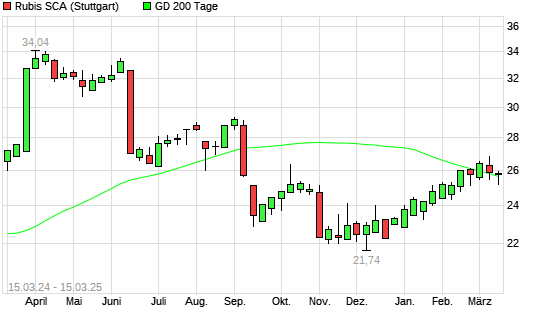 Mit dem Anstieg auf 26,84 EUR hat die Rubis-Aktie am 14.03.2025 die 200-Tage-Linie nach oben gekreuzt.Die Rubis-Aktie befand sich seit dem 13.03.2025 im langfristigen Abwärtstrend und hat in ...weiterlesen