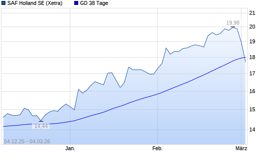 Mit dem Rücksetzer auf 17,90 EUR hat die SAF Holland-Aktie am 03.03.2026 die 38-Tage-Linie nach unten gekreuzt.Die SAF Holland-Aktie befindet sich seit dem 06.01.2026 im ...weiterlesen