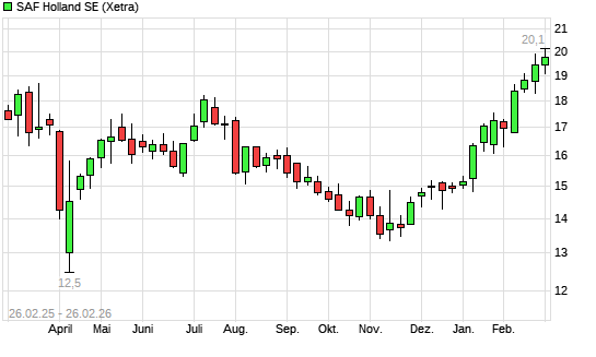 Mit dem Anstieg auf 19,98 EUR hat die SAF Holland-Aktie (ISIN DE000SAFH001) am 25.02.2026 ein neues All-Time-High erreicht und damit den Kurs vom 12.01.2018 eingestellt.Die ...weiterlesen
