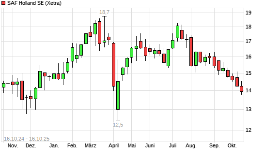 Mit dem Rücksetzer auf 13,78 EUR hat die SAF Holland-Aktie (ISIN DE000SAFH001) am 15.10.2025 ein neues 6-Monats-Tief erreicht und damit den Kurs vom 14.10.2025 eingestellt.Die SAF Holland-Aktie ...weiterlesen