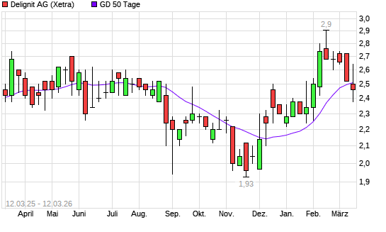 Mit dem Anstieg auf 2,50 EUR hat die Delignit-Aktie am 11.03.2026 die 50-Tage-Linie nach oben gekreuzt.Die Delignit-Aktie befindet sich seit dem 27.01.2026 im langfristigen ...weiterlesen