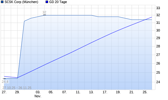 Mit dem Rücksetzer auf 31,40 EUR hat die SCSK-Aktie am 25.11.2025 die 20-Tage-Linie nach unten gekreuzt.Die SCSK-Aktie befindet sich seit dem 29.10.2025 im langfristigen Aufwärtstrend und ...weiterlesen