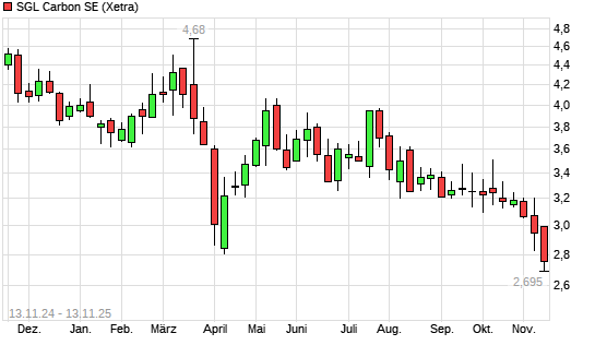 Mit dem Rücksetzer auf 2,81 EUR hat die SGL Carbon-Aktie (ISIN DE0007235301) am 12.11.2025 ein neues 5-Jahres-Tief erreicht und damit den Kurs vom 05.11.2025 eingestellt.Die SGL Carbon-Aktie ...weiterlesen