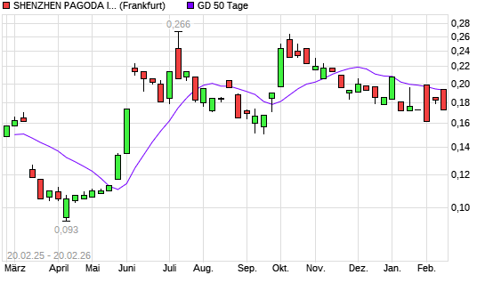 Mit dem Rücksetzer auf 0,17 EUR hat die SHENZHEN PAGODA IND. H1-Aktie am 19.02.2026 die 50-Tage-Linie nach unten gekreuzt.Die SHENZHEN PAGODA IND. H1-Aktie befindet sich seit ...weiterlesen