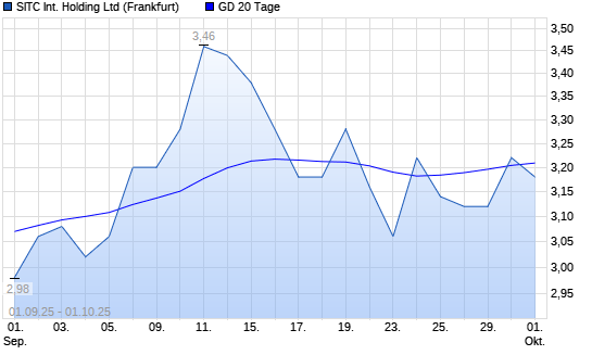 Mit dem Anstieg auf 3,22 EUR hat die SITC INTL Holding REGS-Aktie am 30.09.2025 die 20-Tage-Linie nach oben gekreuzt.Die SITC INTL Holding REGS-Aktie befindet sich seit dem 06.05.2025 im langfristigen ...weiterlesen