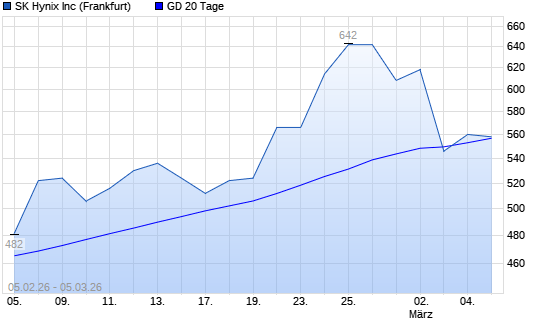Mit dem Anstieg auf 560,00 EUR hat die SK Hynix-Aktie am 04.03.2026 die 20-Tage-Linie nach oben gekreuzt.Die SK Hynix-Aktie befindet sich seit dem 26.05.2025 im langfristigen ...weiterlesen