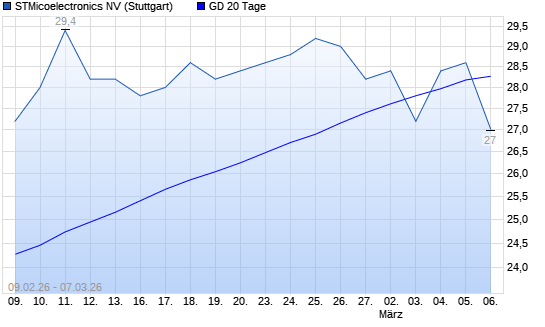 Mit dem Anstieg auf 28,20 EUR hat die STMicoelectronics-Aktie am 06.03.2026 die 20-Tage-Linie nach oben gekreuzt.Die STMicoelectronics-Aktie befindet sich seit dem 05.01.2026 ...weiterlesen