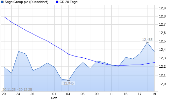 Mit dem Anstieg auf 12,26 EUR hat die Sage Group-Aktie am 19.12.2025 die 20-Tage-Linie nach oben gekreuzt.Die Sage Group-Aktie befindet sich seit dem 25.07.2025 im langfristigen Abwärtstrend ...weiterlesen