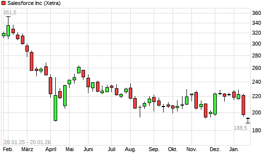 Mit dem Rücksetzer auf 193,34 EUR hat die Salesforce-Aktie (ISIN US79466L3024) am 19.01.2026 ein neues 12-Monats-Tief erreicht und damit den Kurs vom 20.11.2025 ...weiterlesen