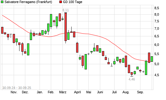 Mit dem Anstieg auf 5,11 EUR hat die Salvatore Ferragamo-Aktie am 29.09.2025 die 100-Tage-Linie nach oben gekreuzt.Die Salvatore Ferragamo-Aktie befindet sich seit dem 20.03.2025 im langfristigen ...weiterlesen