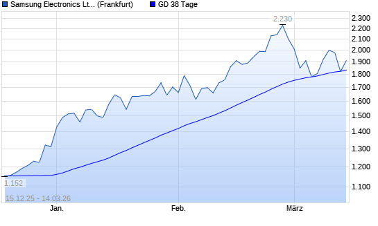 Mit dem Anstieg auf 1.912,00 EUR hat die Samsung-Aktie am 13.03.2026 die 38-Tage-Linie nach oben gekreuzt.Die Samsung-Aktie befindet sich seit dem 24.06.2025 im langfristigen ...weiterlesen