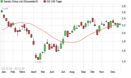 Mit dem Anstieg auf 2,23 EUR hat die Sands China-Aktie am 22.12.2025 die 100-Tage-Linie nach oben gekreuzt.Die Sands China-Aktie befindet sich seit dem 20.10.2025 im langfristigen Aufwärtstrend ...weiterlesen