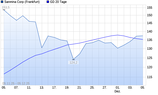 Mit dem Anstieg auf 137,20 EUR hat die Sanmina Corporation-Aktie am 04.12.2025 die 20-Tage-Linie nach oben gekreuzt.Die Sanmina Corporation-Aktie befindet sich seit dem 07.05.2025 im langfristigen ...weiterlesen