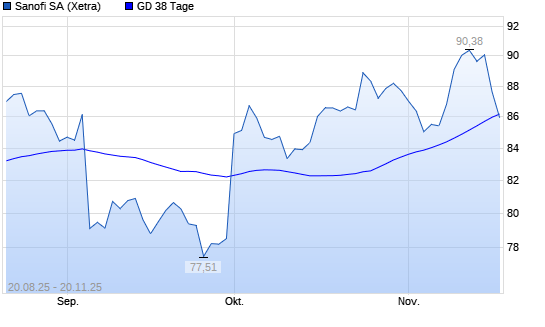 Mit dem Rücksetzer auf 85,94 EUR hat die Sanofi-Aktie am 19.11.2025 die 38-Tage-Linie nach unten gekreuzt.Die Sanofi-Aktie befindet sich seit dem 14.11.2025 im langfristigen Abwärtstrend ...weiterlesen