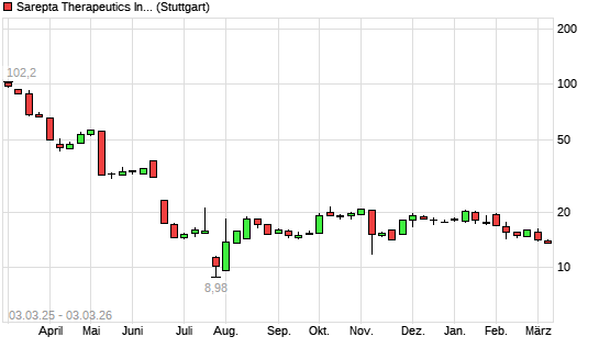 Mit dem Rücksetzer auf 13,81 EUR hat die Sarepta Therapeutics-Aktie (ISIN US8036071004) am 02.03.2026 ein neues 6-Monats-Tief erreicht und damit den Kurs vom ...weiterlesen
