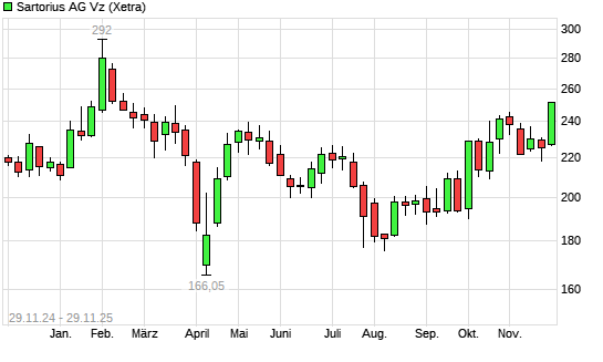 Mit dem Anstieg auf 250,70 EUR hat die Sartorius Vz-Aktie (ISIN DE0007165631) am 28.11.2025 ein neues 6-Monats-Hoch erreicht und damit den Kurs vom 25.11.2025 eingestellt.Die Sartorius Vz-Aktie ...weiterlesen