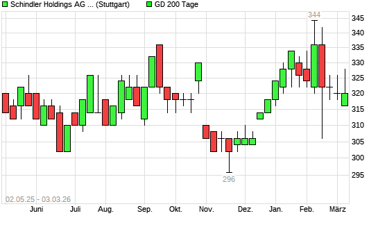 Mit dem Rücksetzer auf 314,00 EUR hat die Schindler-Aktie am 02.03.2026 die 200-Tage-Linie nach unten gekreuzt.Die Schindler-Aktie befand sich seit dem 16.02.2026 im ...weiterlesen