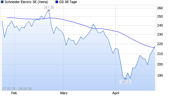 Mit dem Anstieg auf 218,05 EUR hat die Schneider Electric-Aktie am 25.04.2025 die 38-Tage-Linie nach oben gekreuzt.Die Schneider Electric-Aktie befindet sich seit dem 21.03.2025 im langfristigen ...weiterlesen