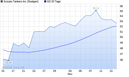 Mit dem Rücksetzer auf 52,34 EUR hat die Scorpio Tankers-Aktie am 14.11.2025 die 20-Tage-Linie nach unten gekreuzt.Die Scorpio Tankers-Aktie befindet sich seit dem 22.08.2025 im langfristigen ...weiterlesen
