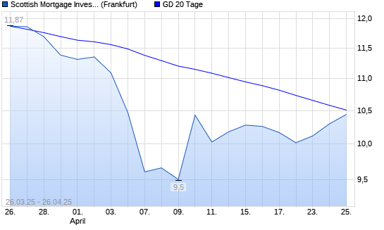 Mit dem Anstieg auf 10,44 EUR hat die Scottish Mortgage Investment-Aktie am 25.04.2025 die 20-Tage-Linie nach oben gekreuzt.Die Scottish Mortgage Investment-Aktie befindet sich seit dem 04.04.2025 ...weiterlesen