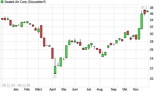 Mit dem Anstieg auf 37,60 EUR hat die Sealed Air-Aktie (ISIN US81211K1007) am 25.11.2025 ein neues 12-Monats-Hoch erreicht und damit den Kurs vom 24.11.2025 eingestellt.Die Sealed Air-Aktie ...weiterlesen