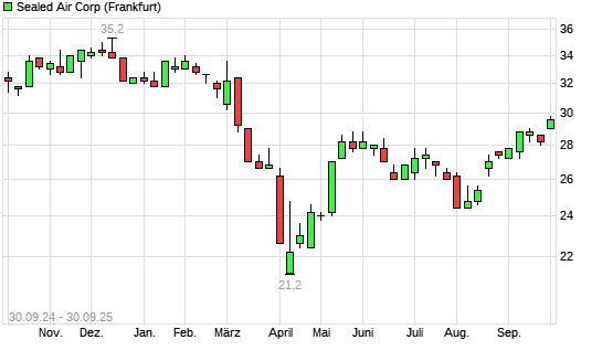 Mit dem Anstieg auf 29,60 EUR hat die Sealed Air-Aktie (ISIN US81211K1007) am 29.09.2025 ein neues 6-Monats-Hoch erreicht und damit den Kurs vom 17.09.2025 eingestellt.Die Sealed Air-Aktie befindet ...weiterlesen