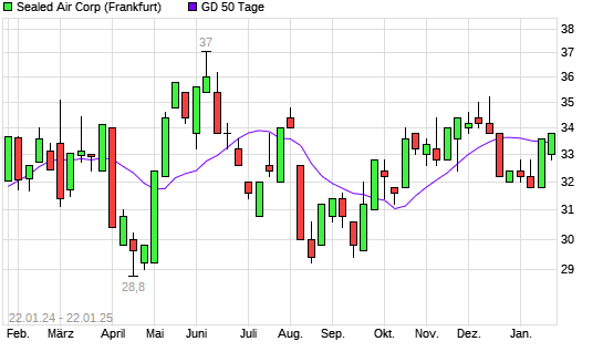Mit dem Anstieg auf 33,60 EUR hat die Sealed Air-Aktie am 21.01.2025 die 50-Tage-Linie nach oben gekreuzt.Die Sealed Air-Aktie befindet sich seit dem 15.01.2025 im langfristigen Aufwärtstrend ...weiterlesen