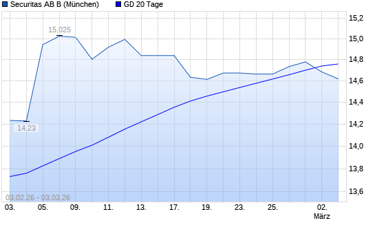 Mit dem Rücksetzer auf 14,70 EUR hat die Securitas B-Aktie am 02.03.2026 die 20-Tage-Linie nach unten gekreuzt.Die Securitas B-Aktie befindet sich seit dem 12.12.2025 im ...weiterlesen